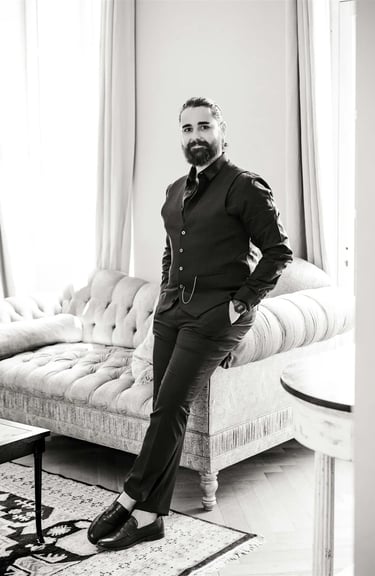 Beyond weddings, Thomas finds inspiration in gastronomy, fashion, travel and the world of design. During the quieter months, he escapes to the mountains, enjoys the calm, reads, and reconnects with simple moments of stillness. He is also a devoted family man, happiest when spending time with his wife and caring for his daughter, a softness that naturally infuses his approach on a wedding day.